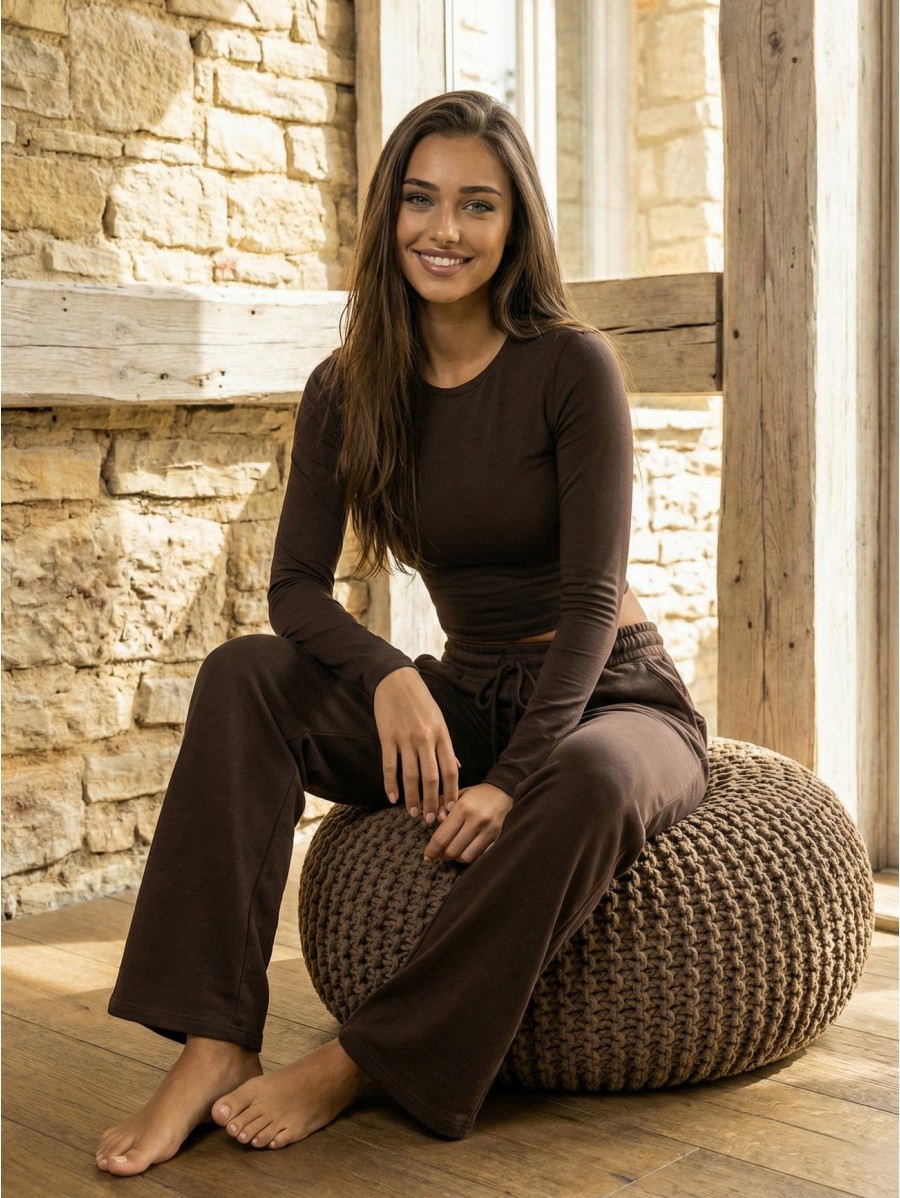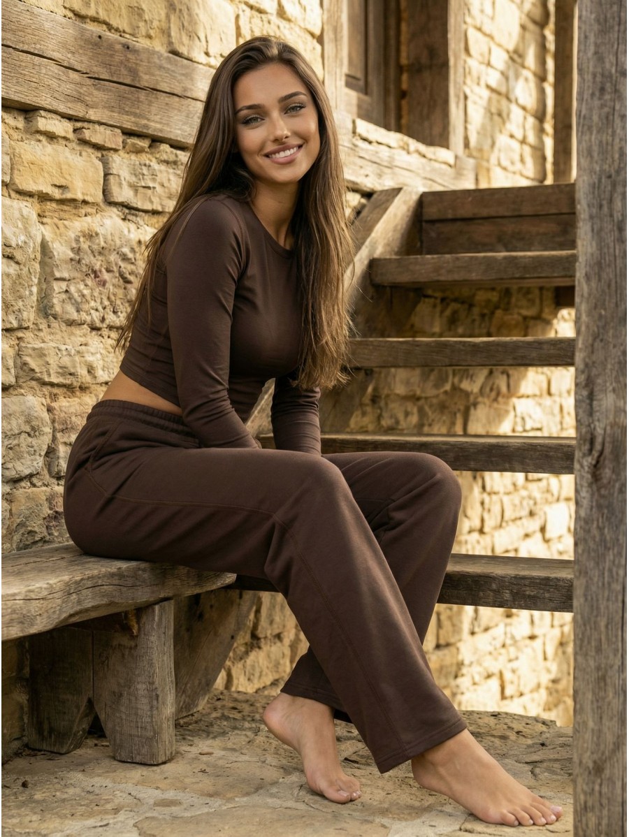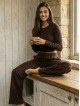 PURE DAILY K161 to casualowy komplet z wiskozowej dzianiny premium, składający się z luźnych spodni i dopasowanej bluzki.